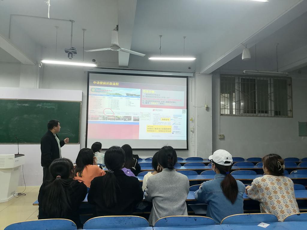 郑波从毕业生诚信教育、信息确认及关键信息更改、毕业生还款流程、还款注意事项等几个方面进行了宣讲,提醒毕业生务必重视个人信用与还贷工作,防止因疏忽大意产生不良信用记录。参会学生认真聆听会议内容,积极做好笔记,在答疑解惑环节踊跃主动提问,大家纷纷表示将按照合同要及个人实际情况合理安排还款时间,注重个人征信保护,做新时代诚信大学生。